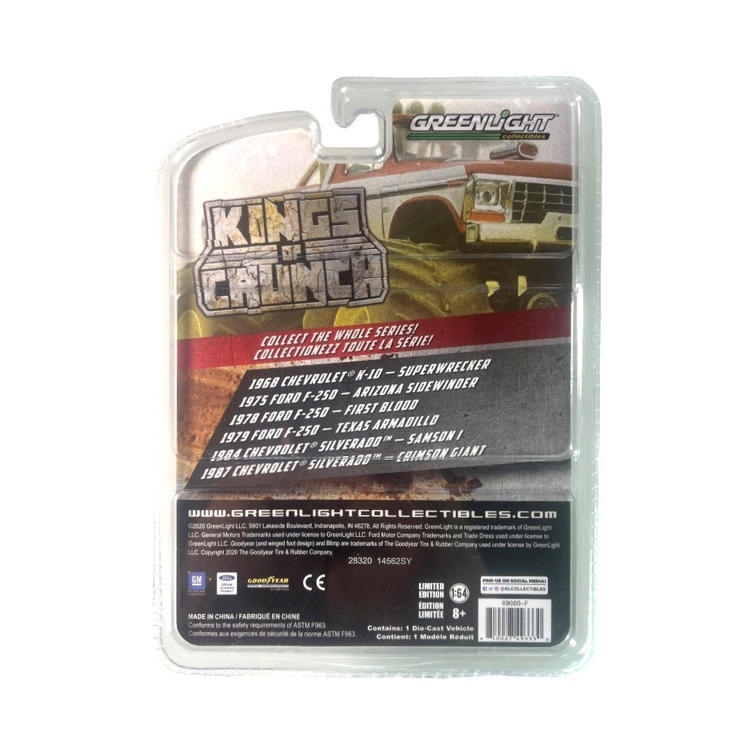 Bring the excitement of monster truck mayhem to your collection with the GreenLight - Kings Of Crunch 1987 Chevrolet Silverado - Crimson Giant in 1:64 scale! This mini powerhouse features bold details and a rugged look, perfect for playful races or showing off on your shelf. Ready to roar, roll, and crunch its way into your heart!